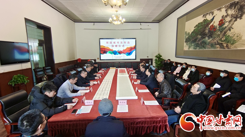 中國甘肅網(wǎng)2月22日訊(本網(wǎng)記者 任磊 楊顏如)22日上午,鄭國斌書法作品捐贈儀式在甘肅省博物館舉行,鄭國斌先生向省博物館捐贈了近20年來創(chuàng)作的10件書法精品。