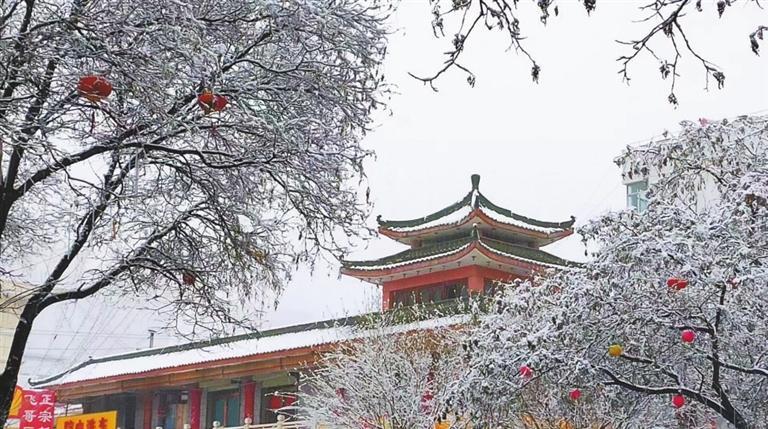會寧縣城,樹葉披上了銀紗。 會寧縣融媒體中心照片