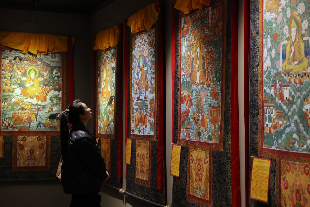 12月26日,北京,觀眾在皇城藝術(shù)館參觀《甘肅甘南非遺文化藝術(shù)展》。中國日?qǐng)?bào)記者 姜東 攝