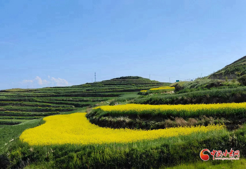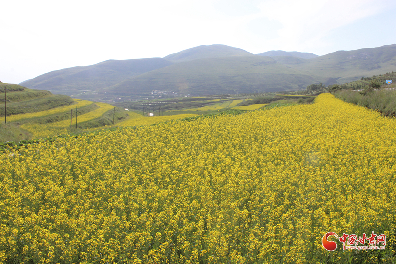 沿著普銀公路來到了被譽為“臨洮最北面的鄉(xiāng)村”的上營瓦窯灘村。這是個寧靜美麗的小山村,秋高氣爽,這里有一大片黃澄澄的油菜花地。一下車,站在普銀公路邊上,一眼望去,田間地頭,成片的油菜花與藍天白云青山交相輝映,村舍藏匿于廣闊的油菜花叢中,蜜蜂、蝴蝶在花叢中翩翩起舞,恰似一幅美麗的田園畫卷。