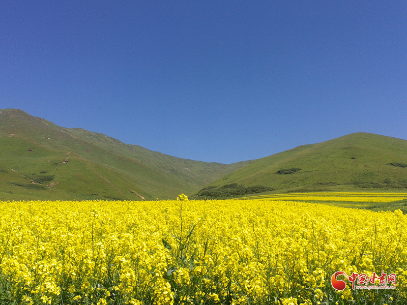 大山深處,秋風嬉戲,藍天澄碧,大地金黃,白云悠然。蜂鳴,蝶舞,花香混合著泥土的芬芳,天地猶如一幅散著金光的風景畫,渾然一體,如夢似幻。赤腳踩在綠油油的嫩草上,癢癢的,柔柔的,酥酥的。如母親的懷抱,舒適而安寧?;ê8呛⒆觽兊奶焯?,在里面打滾,摔跤,捉迷藏……揮灑無邪的童真。這時,或在花間嬉戲,或在花徑漫步,或在山野奔跑,或干脆在觸手可及的藍天白云下,枕著花香,靜靜一眠,把自己放逐在原野上,身心兩忘,回歸一個沒有謊言的世界。安靜,正如無邊無際的虛空;澄澈,又像一望無垠的凈土。清新的空氣,寂靜的原野,一切都是那么凈,靜。一切都融入自然,回歸純真。圣潔,澄凈,忘世,忘機,忘我,又那么浪漫。油菜開始開花。一開始是綠葉叢中一點黃,就好像是綠色的海洋里揚著黃色的一桅風帆。接著是倆桅三桅……有一天你會發(fā)現(xiàn)綠色的海洋消失了,取而代之的是一片金黃色的閃著耀眼光芒的海平面。微風過處,黃色的波濤此起彼伏,后浪推著前浪。有蜜蜂在花間穿梭,時而飛起,時而停在花蕊中辛勤地采著花粉,工作間隙還不忘嗡嗡地哼著歌。蝶兒翩翩飛舞在花海,兒童急急追蝴蝶。好一幅“兒童急走追黃蝶,飛入菜花無處尋”的畫面。白色蝶兒猶如黃色海面上飄著的白云,黃色蝶兒歇息在花的枝頭,你分不清是蝶兒變成了花還是花變成了蝶兒。山區(qū)的油菜花和川區(qū)的油菜花又有著迥然不同的風采。