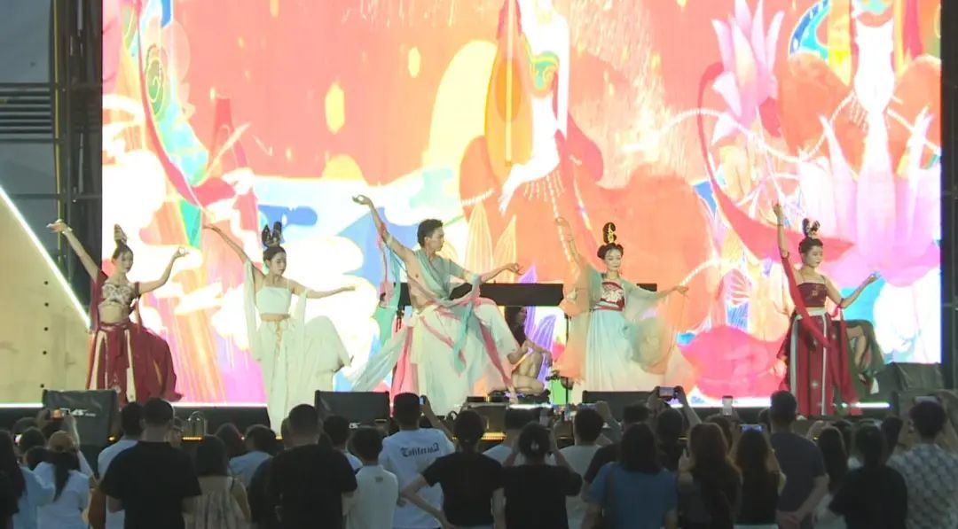 本次電音節(jié)以古老的“絲綢之路”為靈感源泉,巧妙融合了敦煌獨(dú)特的文化藝術(shù)和現(xiàn)代音樂(lè)元素?;顒?dòng)現(xiàn)場(chǎng),觀眾沉浸在五彩斑斕的燈光秀和震撼人心的音響效果中,還能親身參與繪制飛天圖案、體驗(yàn)傳統(tǒng)樂(lè)器演奏,深度感受敦煌的文化藝術(shù)魅力。