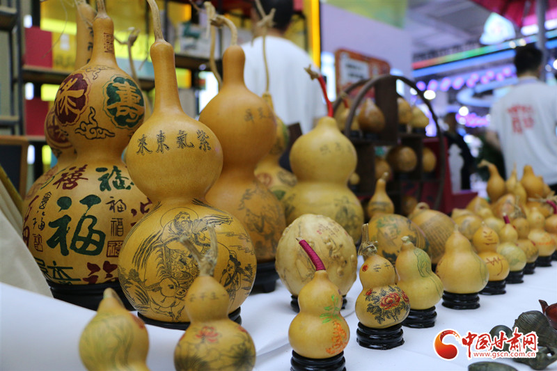 走進(jìn)第三十屆蘭洽會非遺文創(chuàng)館,陳氏雕刻葫蘆的第二代傳人陳兵正在展臺前為駐足參觀的群眾講解著刻葫蘆的過程。