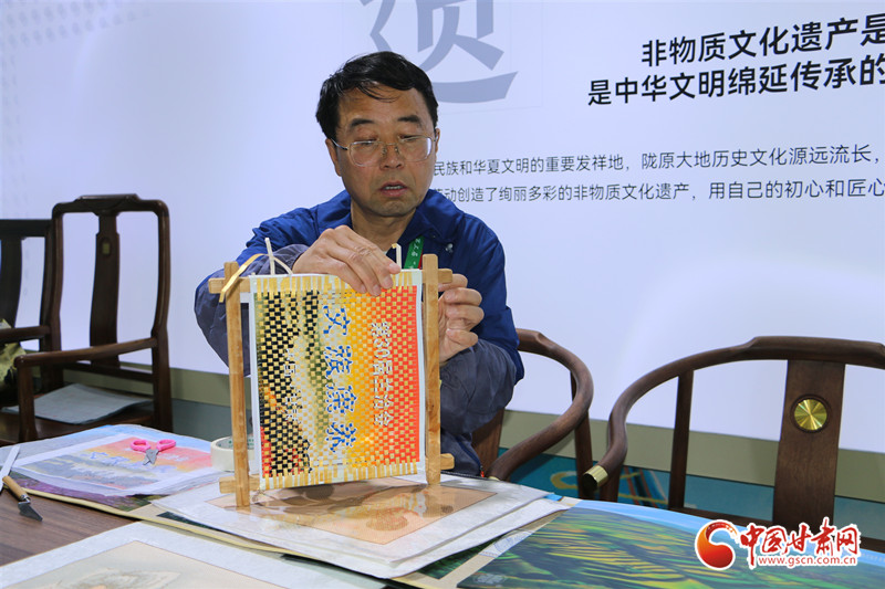 在第三十屆蘭洽會平?jīng)鲳^內(nèi),非遺傳承人魏巍正坐在桌前制作著泥金紙織畫。巧手之下,金色的“緯線”交織于“經(jīng)線”之間,經(jīng)緯交錯,乾坤自成。