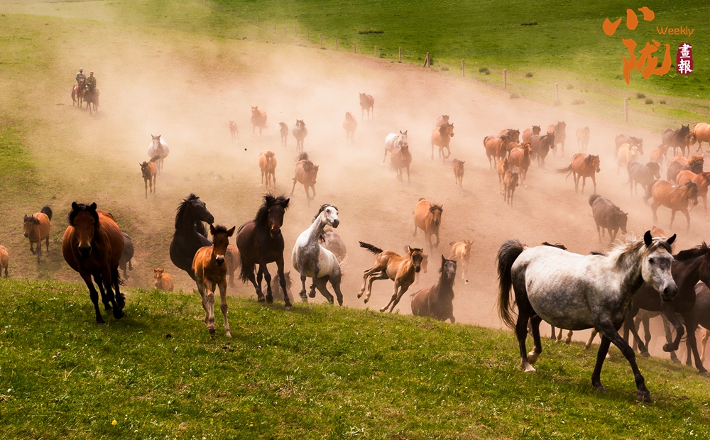 這里有比塞罕壩更壯觀的萬馬奔騰。藍天白云下,一匹匹雄健的駿馬在疾風中奔馳,從一望無際的草場上呼嘯而過,長鬃飛揚,浩浩蕩蕩。