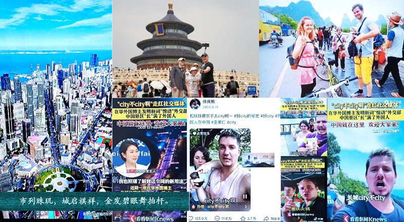 近日,被來華旅游的外國網(wǎng)紅帶火的“city不city”成為網(wǎng)絡(luò)流行語。得益于我國144小時(shí)過境免簽政策適用范圍的不斷擴(kuò)大,眾多外國人來華旅游。這些絡(luò)繹于途的異客相繼在短視頻、社交平臺(tái)上分享其感同身受的中國故事。與日俱增的外國網(wǎng)友則通過這些分享看到了與西方媒體多年來涉華報(bào)道迥然有別的神州風(fēng)貌與事實(shí)真相。官媒從業(yè)多年的筆者,有感于自媒體無處不在、無時(shí)不有、無屆弗遠(yuǎn)的魔力,隨波逐流,疾書填詞《異客滿城探希倜》一闕,調(diào)寄《沁園春》。