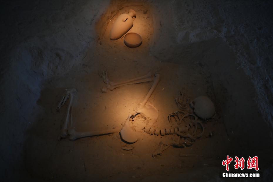 ?。保霸拢玻踩?,2024青年漢學(xué)家研修計(jì)劃甘肅班團(tuán)隊(duì)22個(gè)國家的青年漢學(xué)家,走進(jìn)甘肅省天水市秦安縣大地灣遺址參觀并進(jìn)行專題研修。大地灣遺址是新石器時(shí)代大型聚落遺址,出土了中國乃至世界上最早的彩陶文化、最早的文字符號(hào)、種植生產(chǎn)了中國第一批糧食品種黍、出現(xiàn)了最早的宮殿式建筑、發(fā)明了世界最早的水泥地面、創(chuàng)造了最早的繪畫作品——F411地畫。圖為大地灣博物館墓葬701。中新社記者 李亞龍 攝