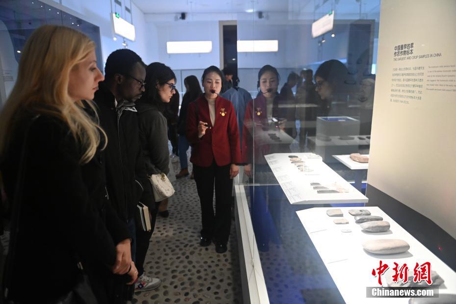10月22日,2024青年漢學(xué)家研修計(jì)劃甘肅班團(tuán)隊(duì)22個(gè)國家的青年漢學(xué)家,走進(jìn)甘肅省天水市秦安縣大地灣遺址參觀并進(jìn)行專題研修。大地灣遺址是新石器時(shí)代大型聚落遺址,出土了中國乃至世界上最早的彩陶文化、最早的文字符號(hào)、種植生產(chǎn)了中國第一批糧食品種黍、出現(xiàn)了最早的宮殿式建筑、發(fā)明了世界最早的水泥地面、創(chuàng)造了最早的繪畫作品——F411地畫。圖為22國青年漢學(xué)家參觀大地灣博物館。中新社記者 李亞龍 攝