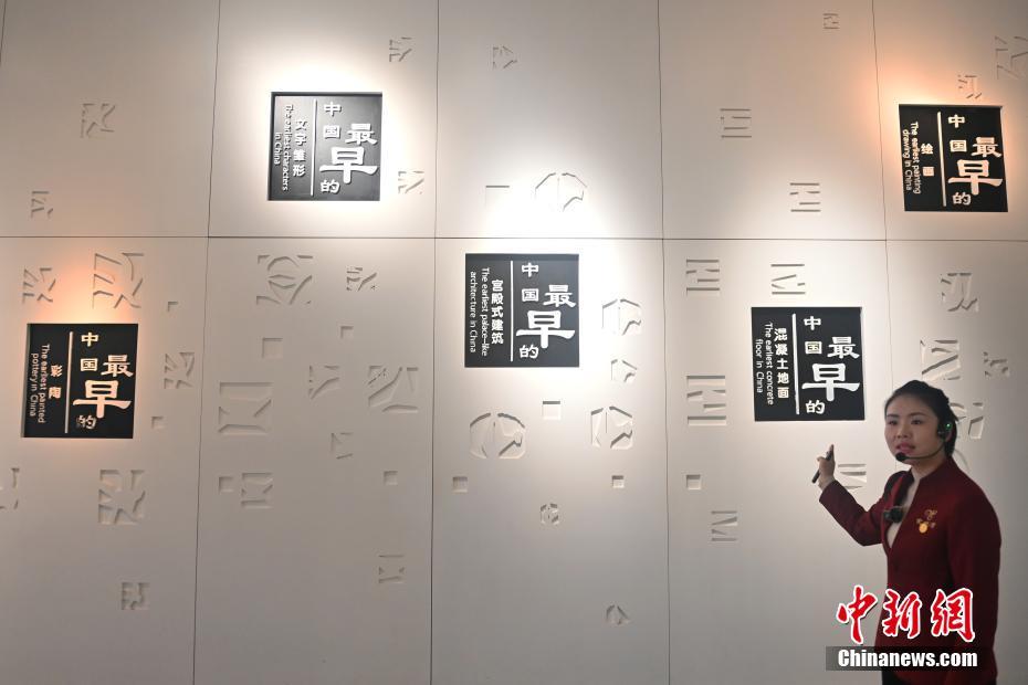 10月22日,2024青年漢學(xué)家研修計(jì)劃甘肅班團(tuán)隊(duì)22個(gè)國家的青年漢學(xué)家,走進(jìn)甘肅省天水市秦安縣大地灣遺址參觀并進(jìn)行專題研修。大地灣遺址是新石器時(shí)代大型聚落遺址,出土了中國乃至世界上最早的彩陶文化、最早的文字符號(hào)、種植生產(chǎn)了中國第一批糧食品種黍、出現(xiàn)了最早的宮殿式建筑、發(fā)明了世界最早的水泥地面、創(chuàng)造了最早的繪畫作品——F411地畫。圖為大地灣博物館講解員介紹大地灣遺址出土之最。中新社記者 李亞龍 攝