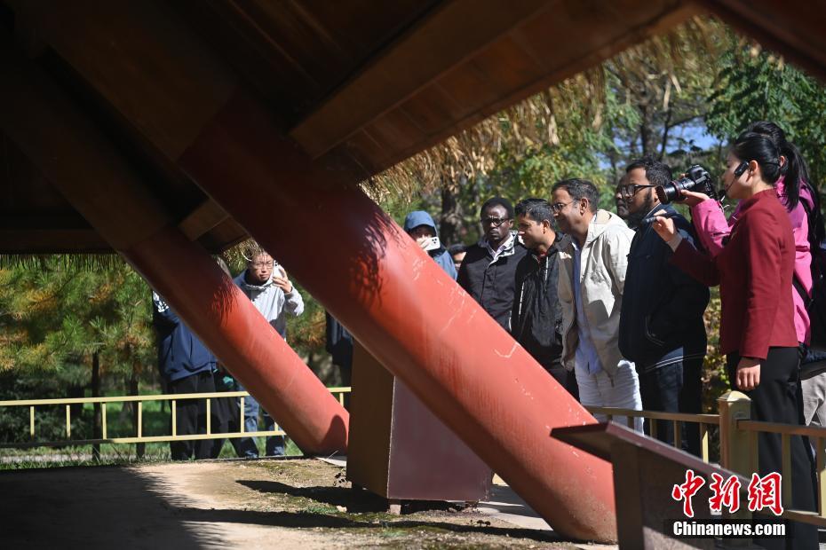 10月22日,2024青年漢學(xué)家研修計(jì)劃甘肅班團(tuán)隊(duì)22個(gè)國家的青年漢學(xué)家,走進(jìn)甘肅省天水市秦安縣大地灣遺址參觀并進(jìn)行專題研修。大地灣遺址是新石器時(shí)代大型聚落遺址,出土了中國乃至世界上最早的彩陶文化、最早的文字符號(hào)、種植生產(chǎn)了中國第一批糧食品種黍、出現(xiàn)了最早的宮殿式建筑、發(fā)明了世界最早的水泥地面、創(chuàng)造了最早的繪畫作品——F411地畫。圖為22國青年漢學(xué)家參觀大地灣遺址。中新社記者 李亞龍 攝