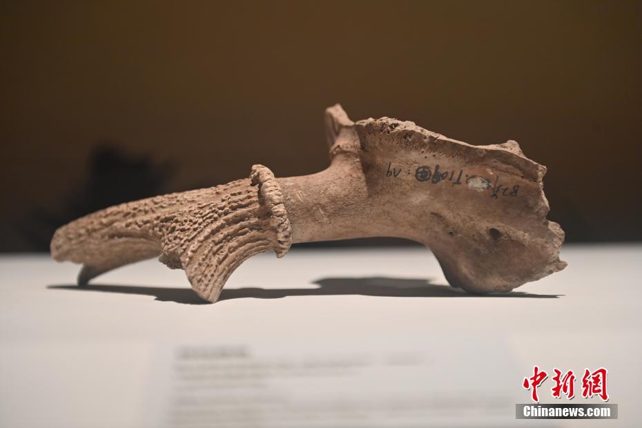 ?。保霸拢玻踩眨玻埃玻辞嗄隄h學(xué)家研修計(jì)劃甘肅班團(tuán)隊(duì)22個(gè)國家的青年漢學(xué)家,走進(jìn)甘肅省天水市秦安縣大地灣遺址參觀并進(jìn)行專題研修。大地灣遺址是新石器時(shí)代大型聚落遺址,出土了中國乃至世界上最早的彩陶文化、最早的文字符號(hào)、種植生產(chǎn)了中國第一批糧食品種黍、出現(xiàn)了最早的宮殿式建筑、發(fā)明了世界最早的水泥地面、創(chuàng)造了最早的繪畫作品——F411地畫。圖為大地灣博物館展品梅花鹿角。中新社記者 李亞龍 攝