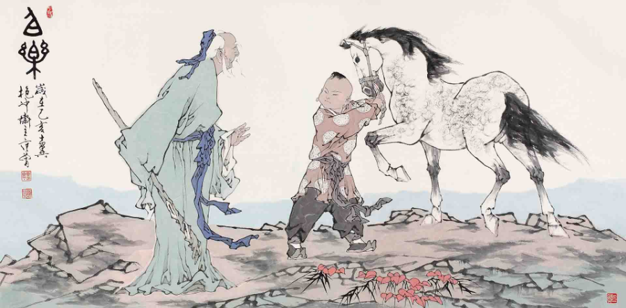 范曾 國(guó)畫(huà)作品《伯樂(lè)圖》。