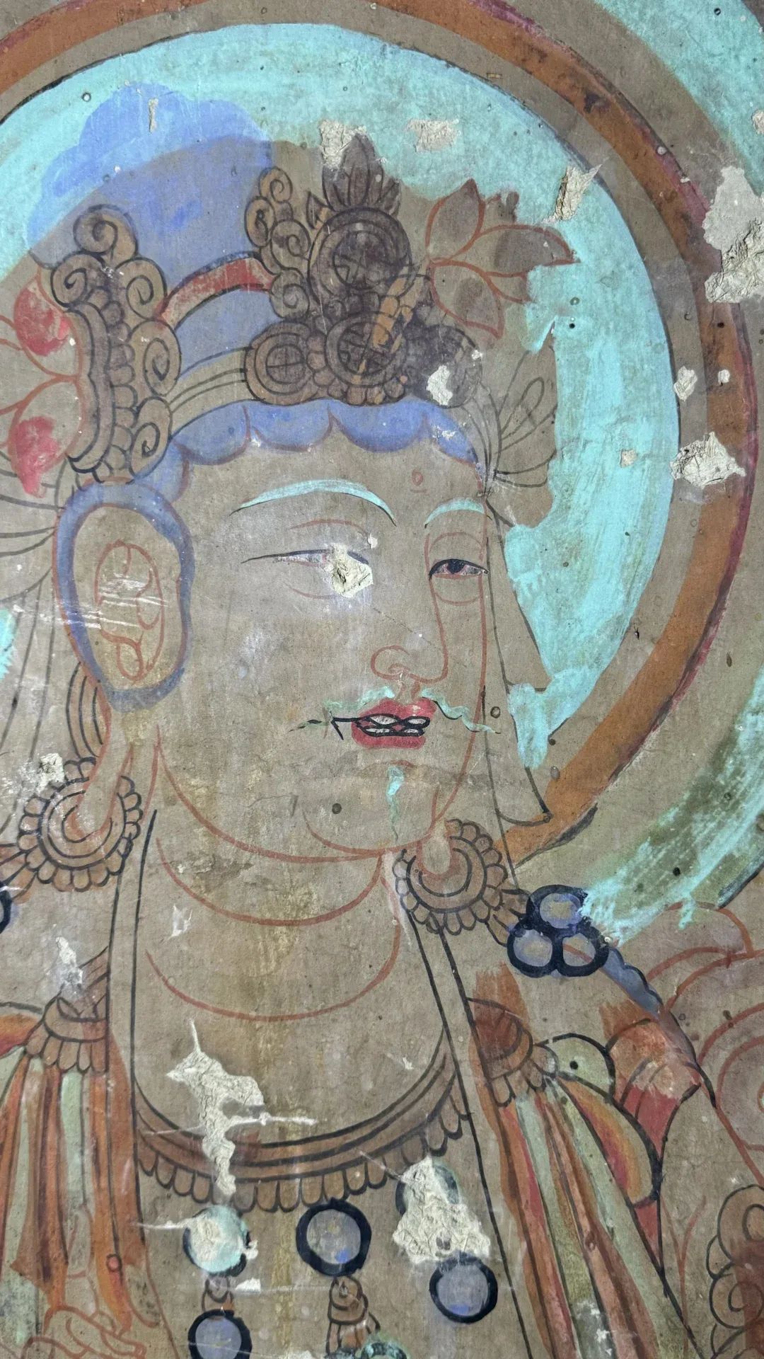 昌馬石窟第1、2、4窟表層西夏時(shí)期所繪壁畫(huà)的內(nèi)容,用色及菩薩的服裝等極接近敦煌莫高窟第328、327窟和榆林窟第17窟西夏壁畫(huà)。其用筆比較端莊拘謹(jǐn),不似唐代自由流暢;用色以赭紅、大綠為主;人物造像尤其是菩薩形象程式化,菩薩衣飾華麗復(fù)雜,但神態(tài)略顯呆板,不似唐代優(yōu)美生動(dòng)和神采煥發(fā);裝飾圖案繁縟化,這些都與敦煌莫高窟、瓜州榆林窟、肅北五個(gè)廟同時(shí)期的壁畫(huà)具有統(tǒng)一的時(shí)代風(fēng)格。