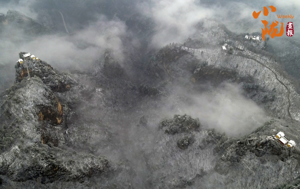 從高空瞭望,目之所及皆為雪林,縹緲的云霧在林間縈繞,時而蜿蜒迂回,時而傾泄流動,勝似仙境!