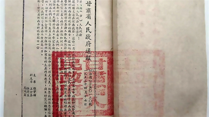 1950年1月8日,鄧寶珊正式就任甘肅省人民政府主席和省長(zhǎng)。他感到責(zé)任重大,也對(duì)甘肅的發(fā)展充滿了希望。他經(jīng)常到下面體察民情,足跡遍布全省的各個(gè)縣。在不能通車的偏遠(yuǎn)地方,就是步行幾小時(shí)也要走到下面的村縣。1952年3月2日,鄧寶珊主席一行從蘭州出發(fā),對(duì)武威和酒泉兩個(gè)專區(qū)展開視察,歷時(shí)一個(gè)多月,走訪了永登、古浪、山丹、張掖、敦煌等13個(gè)縣。山丹縣1950年劃歸武威專區(qū),1955年后復(fù)歸張掖專區(qū)。