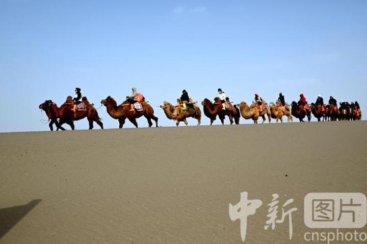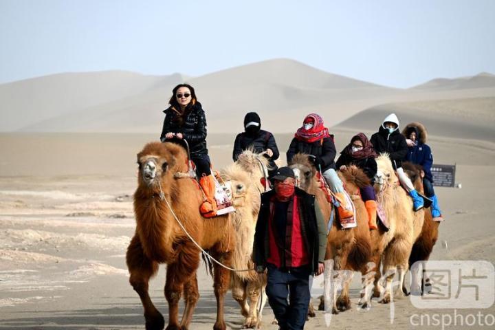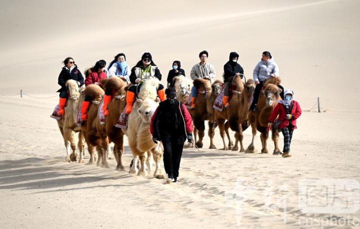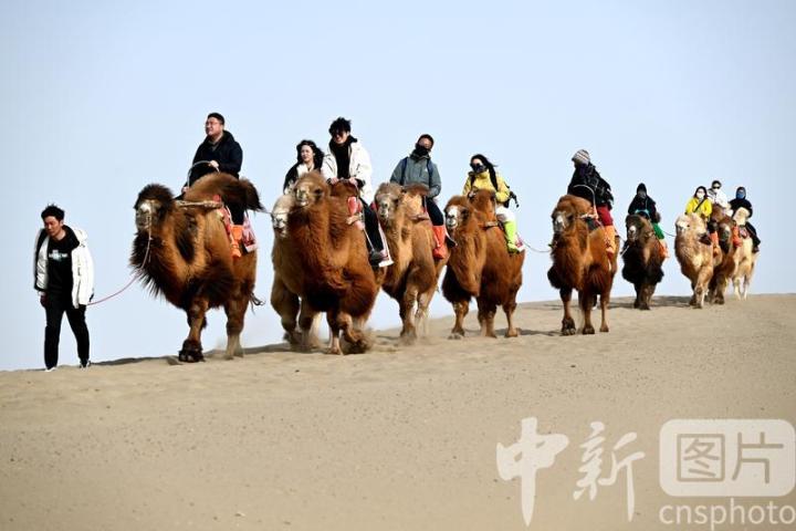 2025年3月2日,游客在甘肅省敦煌市鳴沙山月牙泉景區(qū)游覽。從3月1日開始,至3月31日,甘肅省敦煌市鳴沙山月牙泉景區(qū)、世界文化遺產(chǎn)玉門關(guān)遺址、敦煌雅丹世界地質(zhì)公園三大市屬景區(qū)推出門票半價優(yōu)惠政策,吸引游客走進敦煌,欣賞大漠風光,體驗絲路風情。中新社發(fā) 張曉亮 攝