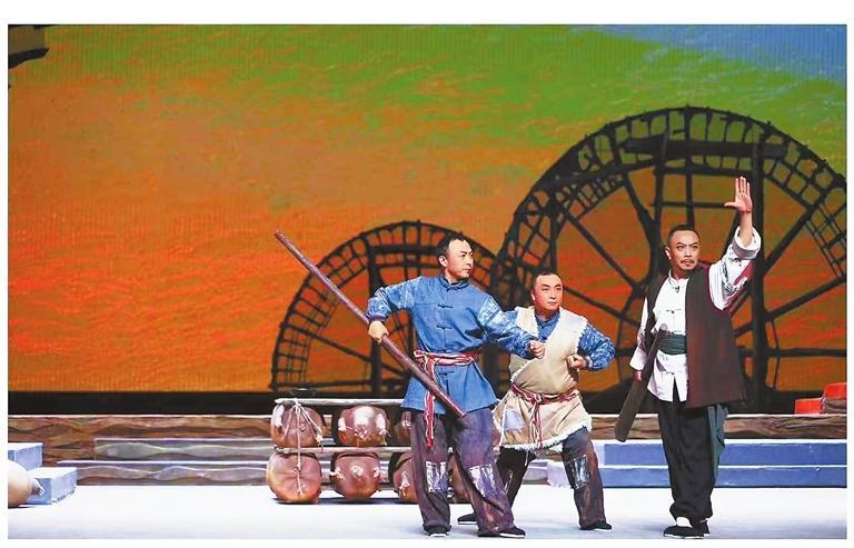 地域文化符號的創(chuàng)造性轉(zhuǎn)化,是該劇藝術(shù)創(chuàng)新的另一亮點(diǎn)。劇中,蘭州太平鼓、黃河水車等元素被巧妙融入劇情:太平鼓在“祭河神”的一場戲中既是祭祀道具,又成為鼓舞士氣的戰(zhàn)鼓;黃河水車則通過光影變幻,象征著時(shí)代的流轉(zhuǎn)與歷史的延續(xù)。這種將地域文化符號轉(zhuǎn)化為戲劇語言的嘗試,使作品在保持隴劇本體特征的同時(shí),獲得了更廣闊的審美空間。