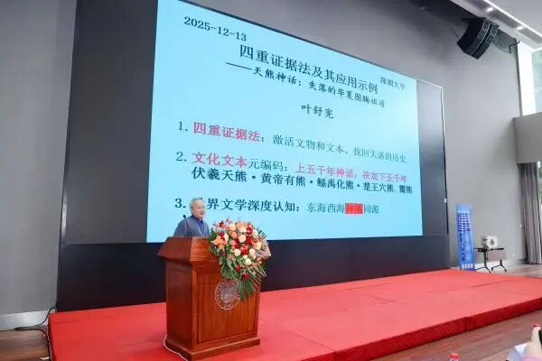 葉舒憲強(qiáng)調(diào)教授“四重證據(jù)法”對(duì)文明互鑒的推動(dòng)作用,國(guó)際影響持續(xù)擴(kuò)大。葉教授領(lǐng)銜的“神話學(xué)文庫”(第三輯)新書發(fā)布會(huì)在12月6日于上海交通大學(xué)盛大發(fā)布;“文庫”項(xiàng)目計(jì)劃出版71部著作,現(xiàn)已出版66本,余下5本將于2026年出版完成,將構(gòu)建起覆蓋全球25大文明圈的神話研究網(wǎng)絡(luò)。這是將“四重證據(jù)法”進(jìn)行跨文明比較研究的首次探索,揭示不同神話體系共通的“根性邏輯”。