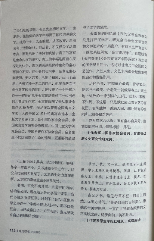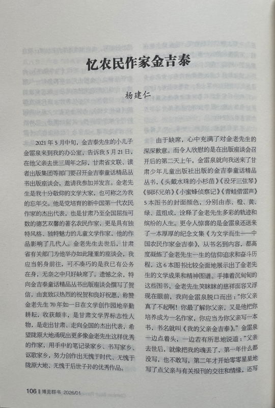 《博覽群書》期刊發(fā)表?xiàng)罱ㄈ饰恼隆稇涋r(nóng)民作家金吉泰》