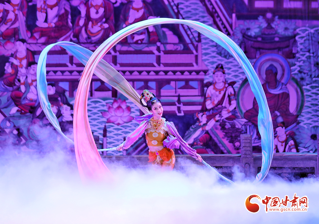 絲路漫漫、駝鈴聲聲……演出當晚,演員們以精湛投入的表演,唱響了絲綢之路的友誼贊歌,同時也為觀眾展開了一幅“活的敦煌壁畫”,從敦煌彩塑和壁畫中提煉出的“千手觀音”“反彈琵琶”“憑欄仙女舞”“霓裳羽衣舞”等舞蹈在舞臺上一一呈現,深深打動了現場觀眾,贏得無數掌聲與喝彩。