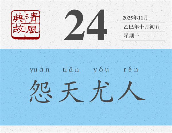 朱熹《論語集注》對“不怨天,不尤人”的理解要簡潔得多,也深刻得多:“不得于天而不怨天,不合于人而不尤人。”《荀子·榮辱》則更進(jìn)一層:“自知者不怨人,知命者不怨天。”能夠看清自己的人就不會去埋怨別人,那么埋怨誰呢,當(dāng)然是埋怨自己了;能夠知道自己命運的人就不會怪罪于天,那么怪罪誰呢,當(dāng)然是怪罪自己了。后世則反“不怨天,不尤人”之意,而以“怨天尤人”為典,形容遇到不稱心的事情,或者事情不順利的時候,一味埋怨天,一味責(zé)怪別人。言外之意,就是不從主觀上找原因,不在自己身上找問題。宋人李昌齡《太上感應(yīng)篇》:“苛虐其下,恐嚇于他。怨天尤人,呵風(fēng)罵雨。”