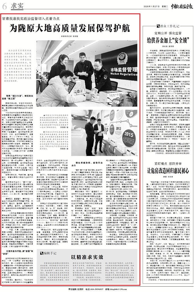 甘肅找準找實政治監(jiān)督切入點著力點 為隴原大地高質(zhì)量發(fā)展保駕護航