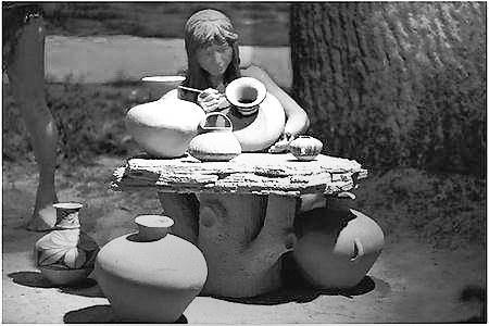 大地灣博物館展廳中先民制作彩陶的場(chǎng)景。