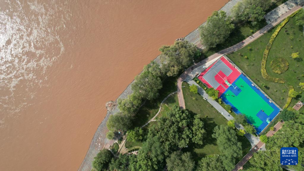 這是位于蘭州市城關(guān)區(qū)黃河北岸的蘭州馬拉松公園一處籃球場(9月24日攝,無人機(jī)照片)。新華社記者陳斌攝