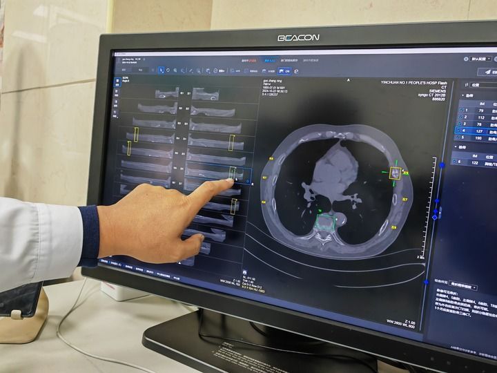 在寧夏回族自治區(qū)銀川市第一人民醫(yī)院,放射科副主任醫(yī)師姜榮興打開電腦上的人工智能輔助診斷系統(tǒng),導入病患CT影像資料后,輕點鼠標,系統(tǒng)瞬間完成初篩——24根肋骨逐一呈現(xiàn)在屏幕上,骨折和疑似骨折的部位一目了然。醫(yī)生再對初篩結果作出診斷處理,全程用時不到4分鐘。