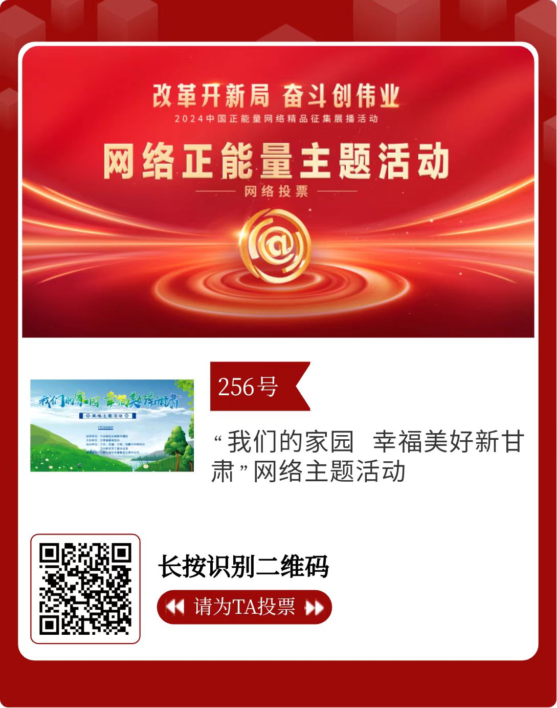 2024中國(guó)正能量網(wǎng)絡(luò)精品,蘭州入圍作品邀您投票!