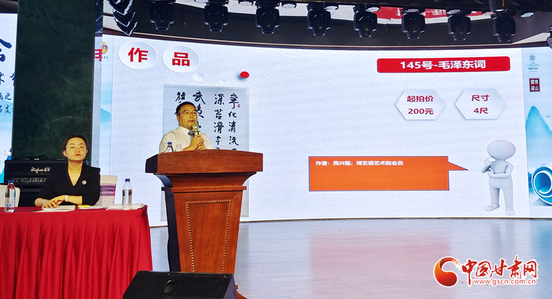 在隨后舉行的義捐義賣活動中,主辦方聯(lián)合甘肅省藝術(shù)館書畫直播間同步啟動線上拍賣。線上線下多方參與,共同為榆中災(zāi)后重建募集善款。