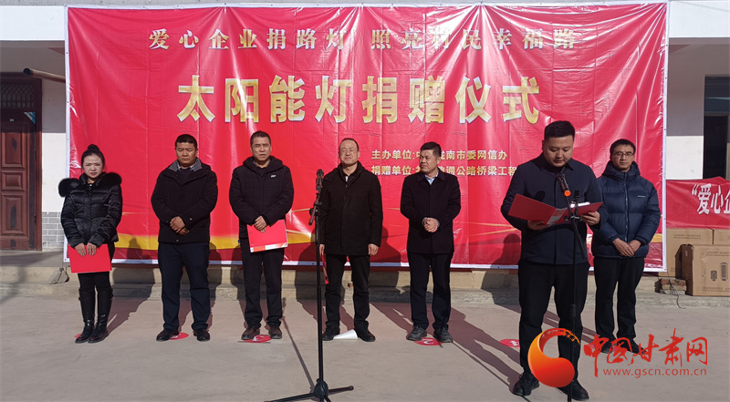 當日,隴南市委網信辦還聯(lián)合禮縣工商聯(lián)、禮縣鼎通公路橋梁工程有限公司舉辦了“愛心企業(yè)捐路燈 照亮村民幸福路”捐贈儀式,為李壩村捐贈價值5萬元的260盞太陽能路燈,助力美麗鄉(xiāng)村建設,照亮村莊夜晚。