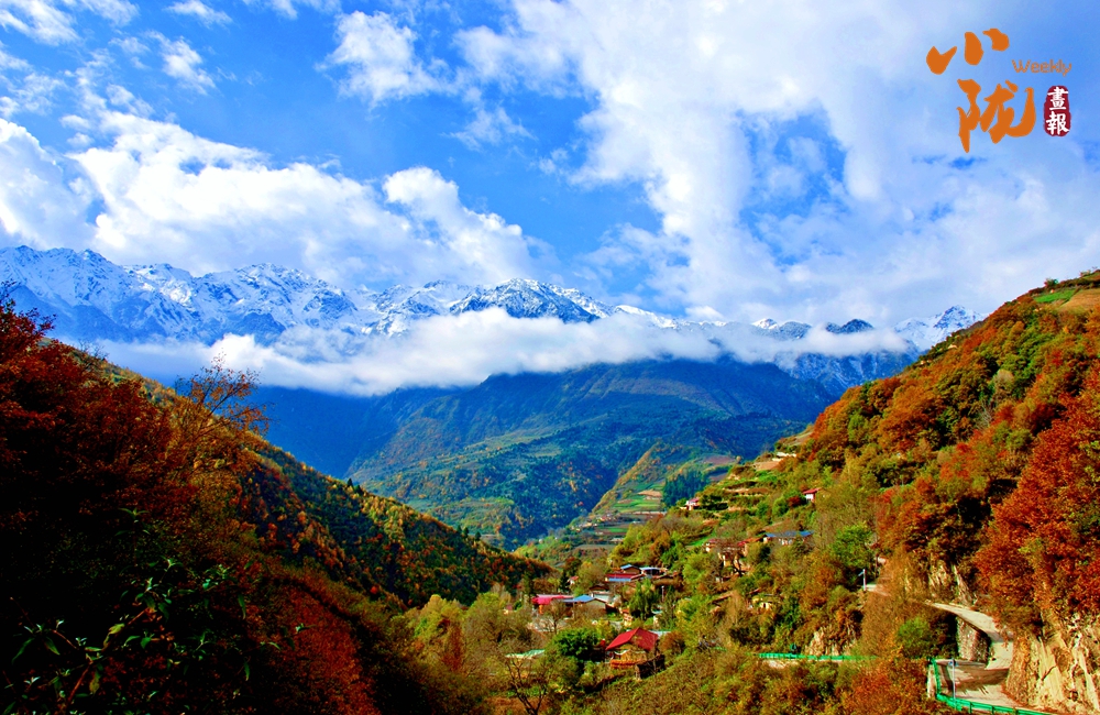 在溝谷深處,依山而建的寨房點(diǎn)綴在斑斕色彩之中。藍(lán)天白云、炊煙裊裊,門前屋后樹(shù)木成景……一切都是最貼近生活的模樣。