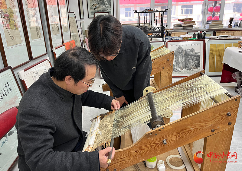 歷經(jīng)百年傳承,這項(xiàng)技藝因始終秉持獨(dú)特匠心,藝術(shù)價(jià)值深厚,其傳承與發(fā)展研究也持續(xù)推動(dòng)著工藝的演進(jìn)?,F(xiàn)在,泥金紙織畫已傳至第五代,擁有織畫藝人28名、傳承制作人10名。代表作品既有《莊浪梯田墨彩畫》《莊浪八景》等山水題材,也有《梅蘭竹菊》《四色牡丹》等花鳥系列,以及眾多古典人物作品。