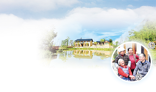 圖①為九坪村民宿風光。   圖②為梁宇(右一)和鄉(xiāng)親們在一起。   圖片均為巫溪縣紅池壩鎮(zhèn)黨委供圖