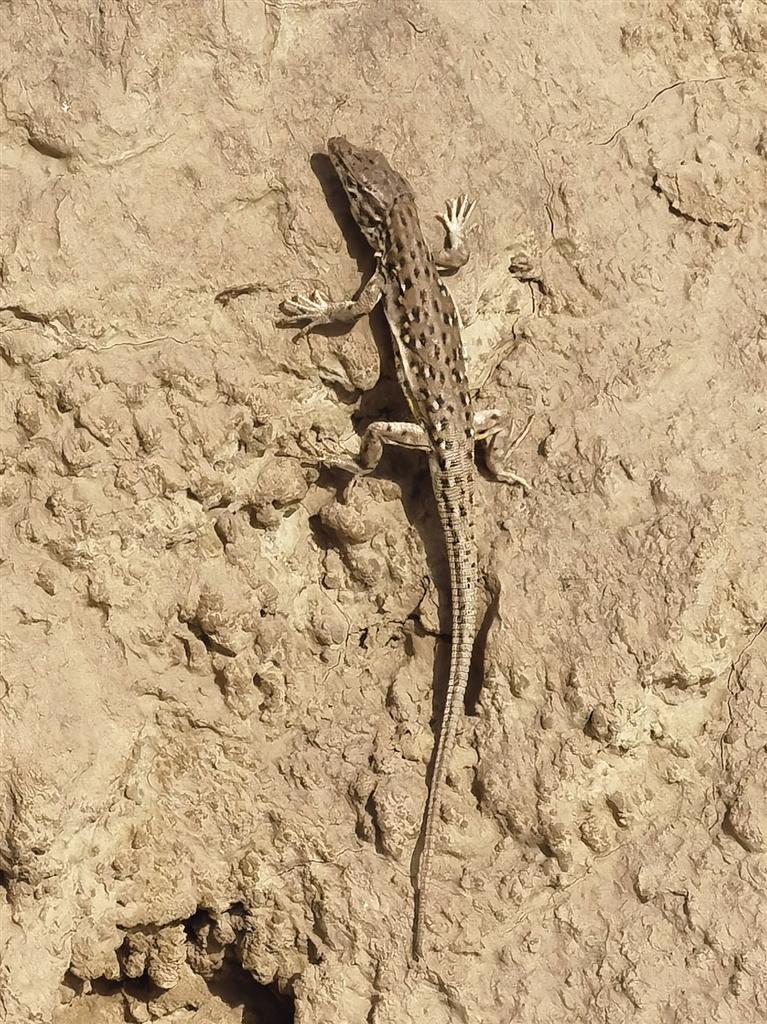 即將到達(dá)山頂,腳底下發(fā)現(xiàn)了亂竄的小蜥蜴。這是當(dāng)?shù)爻R姷囊环N小蜥蜴,就是壁虎,當(dāng)?shù)厝朔Q為蝎虎子、七寸子。土皮色,半厘米粗,5至10厘米長,跑的很快,有很強(qiáng)的自我保護(hù)意識。若被人或獵食者抓住尾巴,會主動斷掉尾巴逃跑,后在不到一個(gè)月的時(shí)間內(nèi),長出新尾巴。盡管有此本領(lǐng),但往往還是鷹和烏鴉等食肉飛禽及蛇的獵物。
