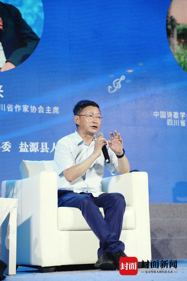 現(xiàn)場,阿來、陳智林與龔學(xué)敏就“詩歌創(chuàng)作如何與音樂結(jié)合”“詩歌如何賦能鹽源縣文旅發(fā)展”“如何打造四川特色的文化事業(yè)和文化產(chǎn)業(yè)”等議題展開了對話,深入探討鹽源的詩與遠(yuǎn)方。