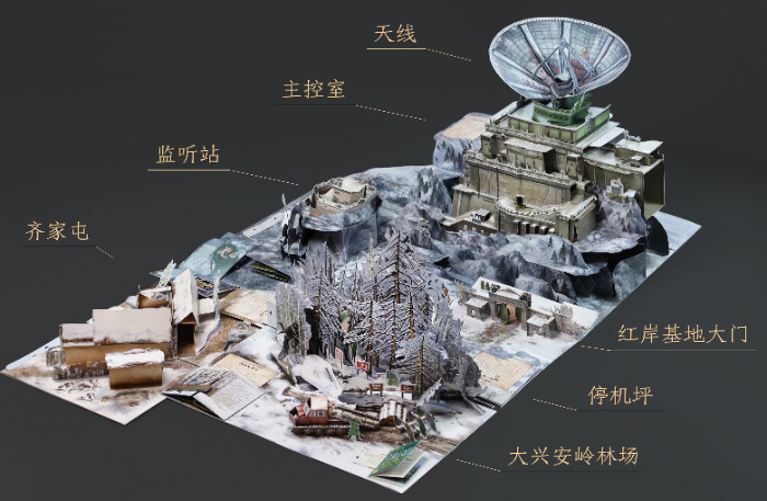 如果說《三體》是關(guān)于宇宙最狂野的想象,那《三體立體書 紅岸基地》就是將這份想象轉(zhuǎn)化為了可觸摸、可視化的閱讀體驗。這本書采用全景展開的裝幀方式,還原從大興安嶺林場、紅岸基地、到齊家屯的整個地圖,全書展開后近1.5平方米,小立體頁和豐富有趣的互動機關(guān)則暗藏細節(jié),使故事結(jié)構(gòu)更為完整。為了確保立體書最終呈現(xiàn)出來的效果,在做立體紙藝設(shè)計的時候,施鎮(zhèn)宇挑戰(zhàn)立體紙藝結(jié)構(gòu)畫幅極限,創(chuàng)新性采用二段式結(jié)構(gòu),搭建出約0.5米高的紅岸基地巨型天線,帶來震撼的閱讀體驗。