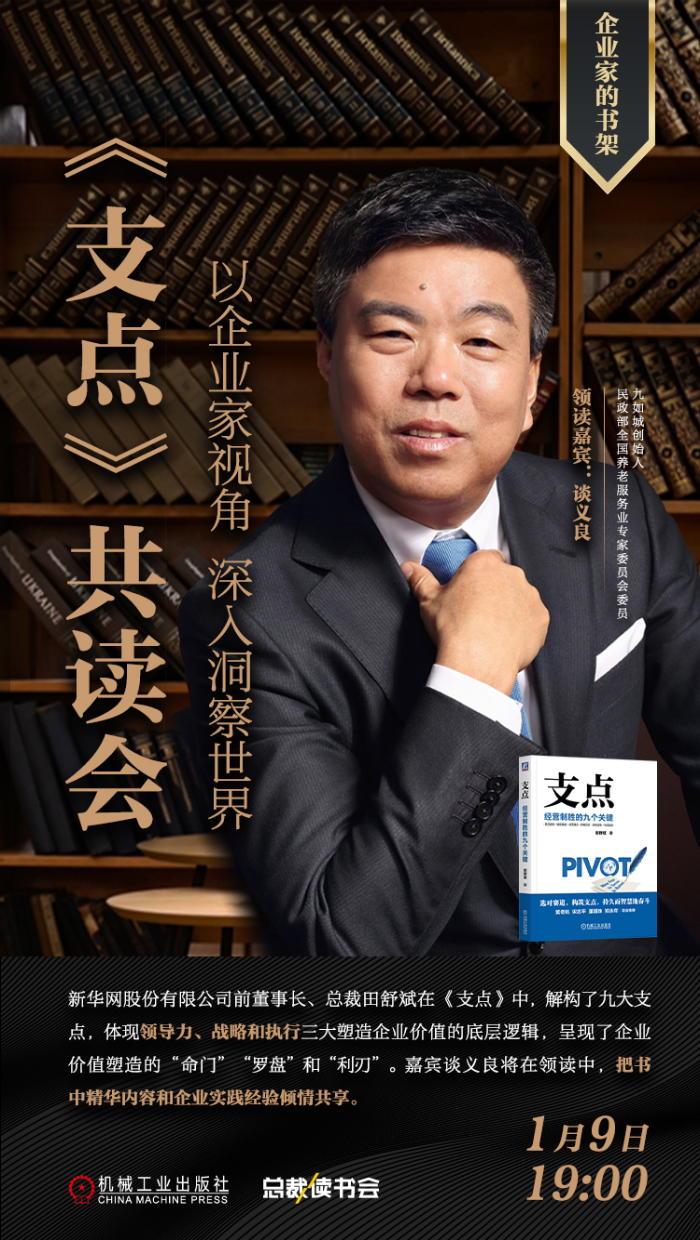 為了企業(yè)家更好地塑造企業(yè)價值,提升格局和眼界,1月9日19:00九如城創(chuàng)始人談義良將領讀《支點》一書,將在“認識管理”視頻號上進行直播。通過如何從多維度視角塑造企業(yè)價值、如何提升企業(yè)家的格局和眼界、如何做好團隊塑造,構筑人力資本基石三個方面,從企業(yè)家視角把書中精華內容和企業(yè)實踐經(jīng)驗傾情共享,千萬別錯過。