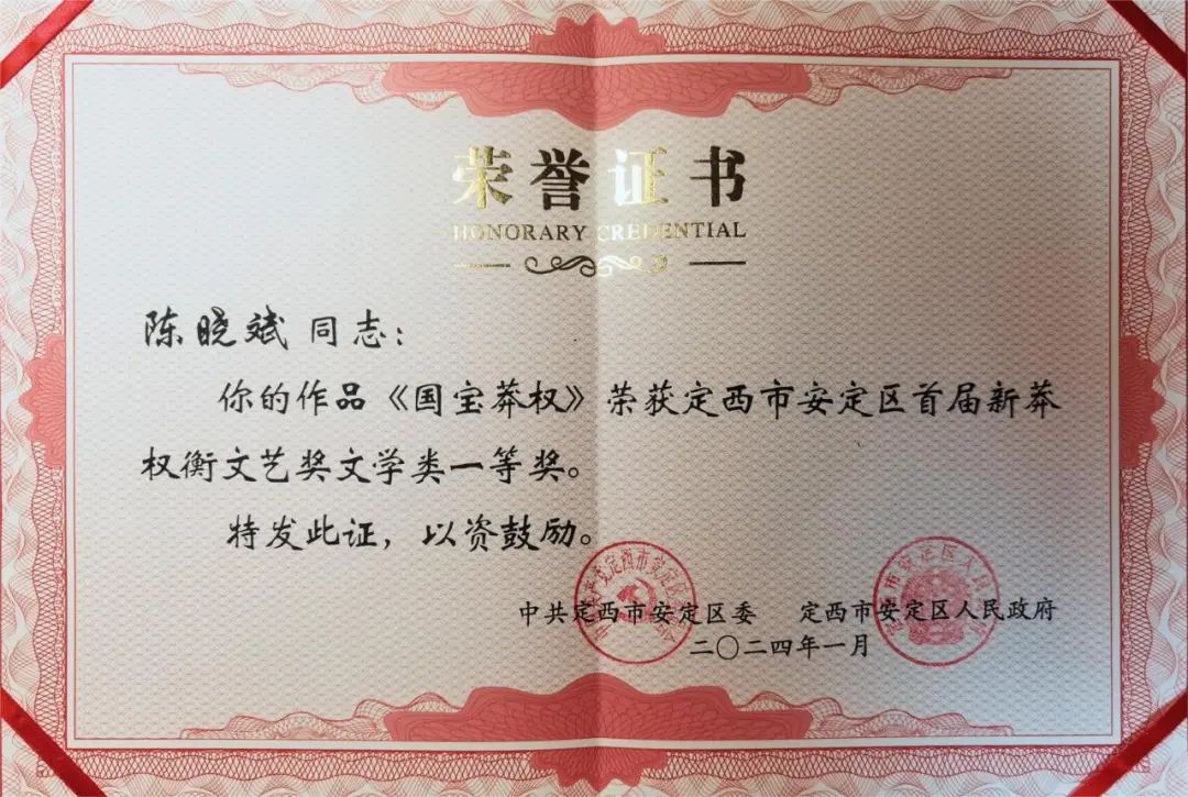 1月21日晚,由定西市安定區(qū)委、區(qū)政府主辦的首屆“新莽權(quán)衡文藝獎”頒獎晚會在隴中許鐵堂秦腔劇院隆重舉行。讀者出版社紀實文學作品《國寶莽權(quán)》榮獲文學類一等獎。