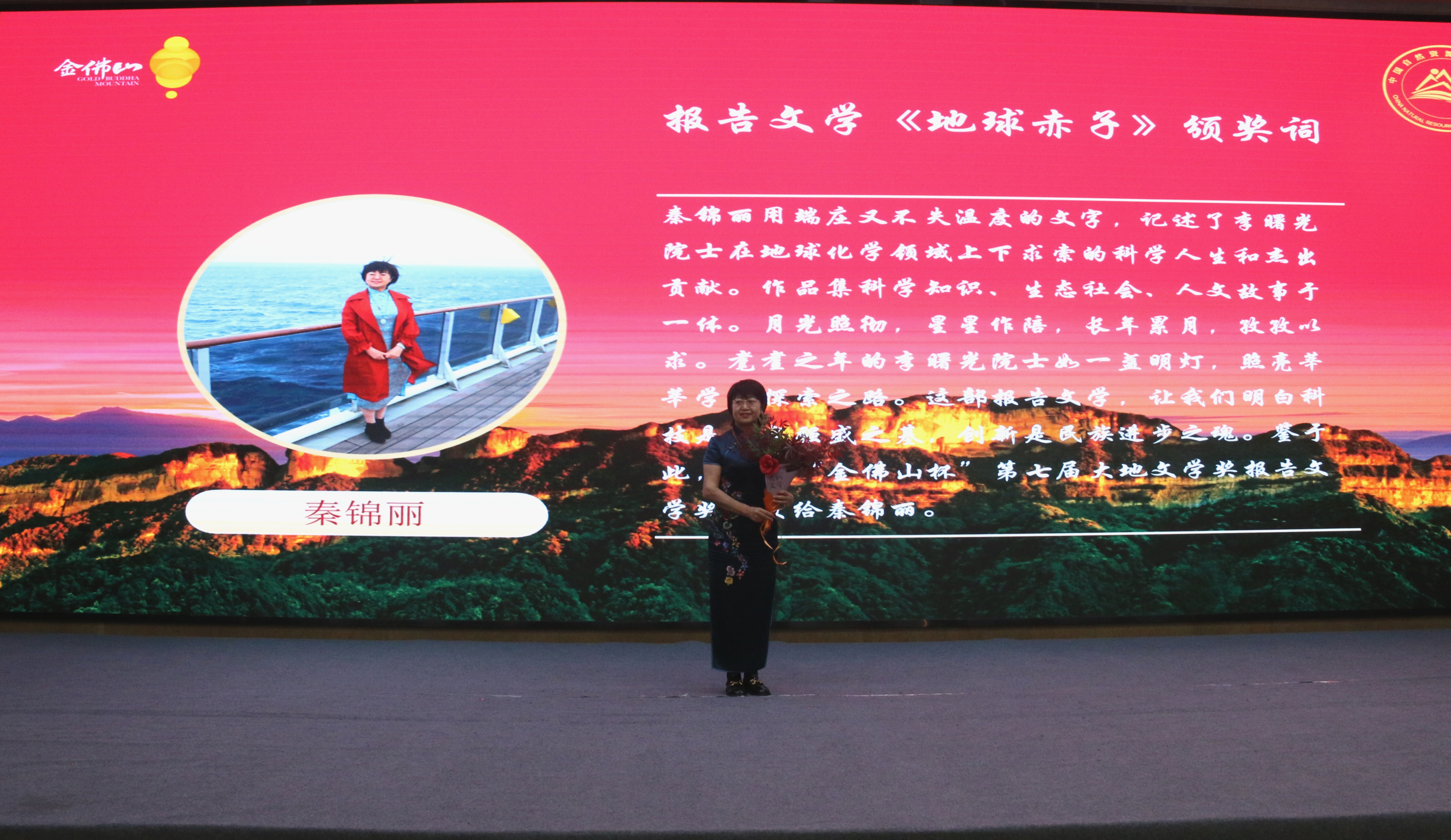 中國甘肅網(wǎng)4月28日訊 4月25日,“金佛山杯”第七屆大地文學(xué)獎頒獎暨金佛山中國自然生態(tài)文學(xué)創(chuàng)作基地授牌儀式在重慶市南川區(qū)舉行。甘肅作家秦錦麗獲“金佛山杯”第七屆大地文學(xué)獎報告文學(xué)獎。