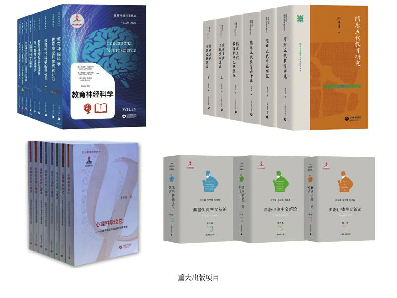 上教社密切關(guān)注新時代教育發(fā)展的重大理論問題與現(xiàn)實問題,響應(yīng)國家教育發(fā)展戰(zhàn)略需求,精心布局學(xué)術(shù)專業(yè)出版“大項目”,連續(xù)入選國家重點出版物出版規(guī)劃、2013—2025年國家辭書編纂出版規(guī)劃,獲國家出版基金資助。這其中除前文中的大型??乒ぞ邥€包括一系列教育與心理學(xué)原創(chuàng)研究和前沿研究成果:由中國教育史學(xué)者孫培青編著的“隋唐五代教育與考試研究叢書”,構(gòu)建了反映隋唐五代教育與考試全貌的教育理論體系和文獻資料體系,是中國教育史學(xué)科建設(shè)的一項學(xué)術(shù)文化積累工程;《中國課程史》以現(xiàn)代課程理論為分析框架,以歷史線索展現(xiàn)中國學(xué)校課程的新陳代謝;“教育神經(jīng)科學(xué)譯叢”(9冊)是我國首個聚焦教育神經(jīng)科學(xué)這一國際教育研究前沿領(lǐng)域的學(xué)術(shù)譯介系列;《中國傳統(tǒng)德育心理學(xué)思想新論》系統(tǒng)挖掘整理中華優(yōu)秀傳統(tǒng)文化中蘊含的德育心理學(xué)思想,構(gòu)建中國特色心理學(xué)話語體系;我國第一套以大心理學(xué)觀,從本土心理學(xué)視角系統(tǒng)探索和解讀不同形態(tài)心理學(xué)的學(xué)術(shù)系列“心理學(xué)形態(tài)研究系列”(6冊),全景考察心理學(xué)的命運與前途,深入探索中國本土心理學(xué)的選擇與突破;《弗洛伊德主義新論》(三卷)匯聚國內(nèi)弗洛伊德主義研究領(lǐng)域的權(quán)威學(xué)者,歷史展現(xiàn)弗洛伊德理論的百年發(fā)展歷程,提供弗洛伊德主義研究的“全景圖”。這些重大出版項目為構(gòu)建中國特色自主知識體系,建設(shè)中國教育學(xué)和心理學(xué)學(xué)科體系、學(xué)術(shù)體系、話語體系發(fā)揮了重要作用。