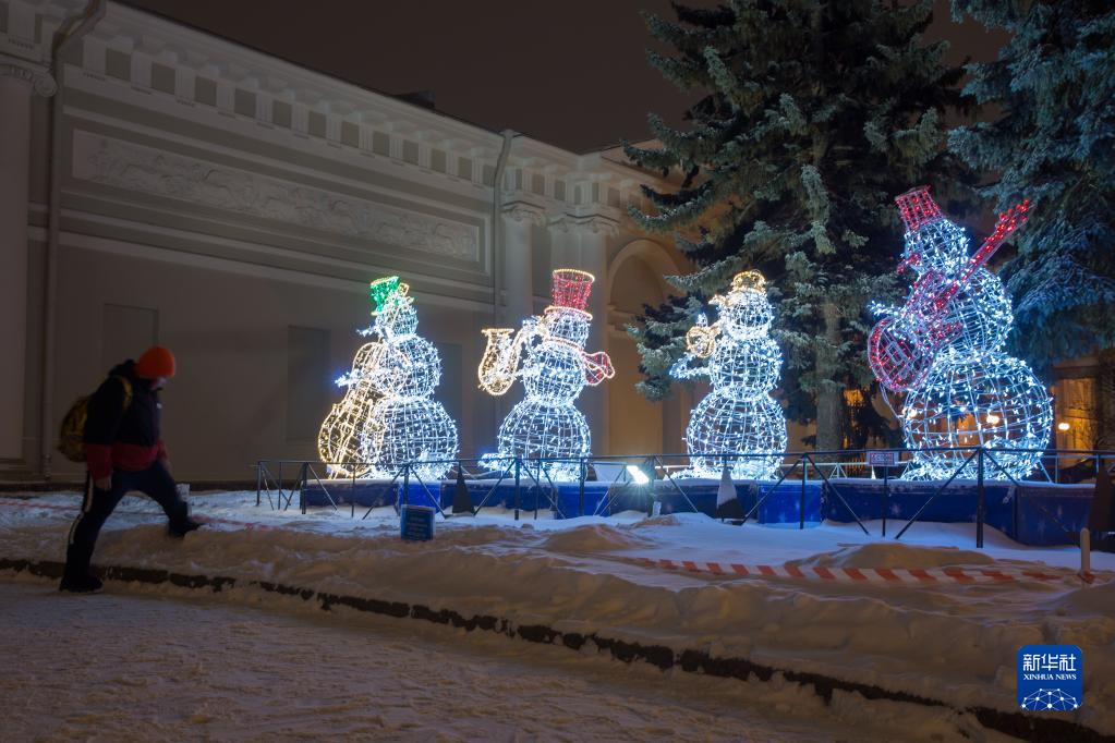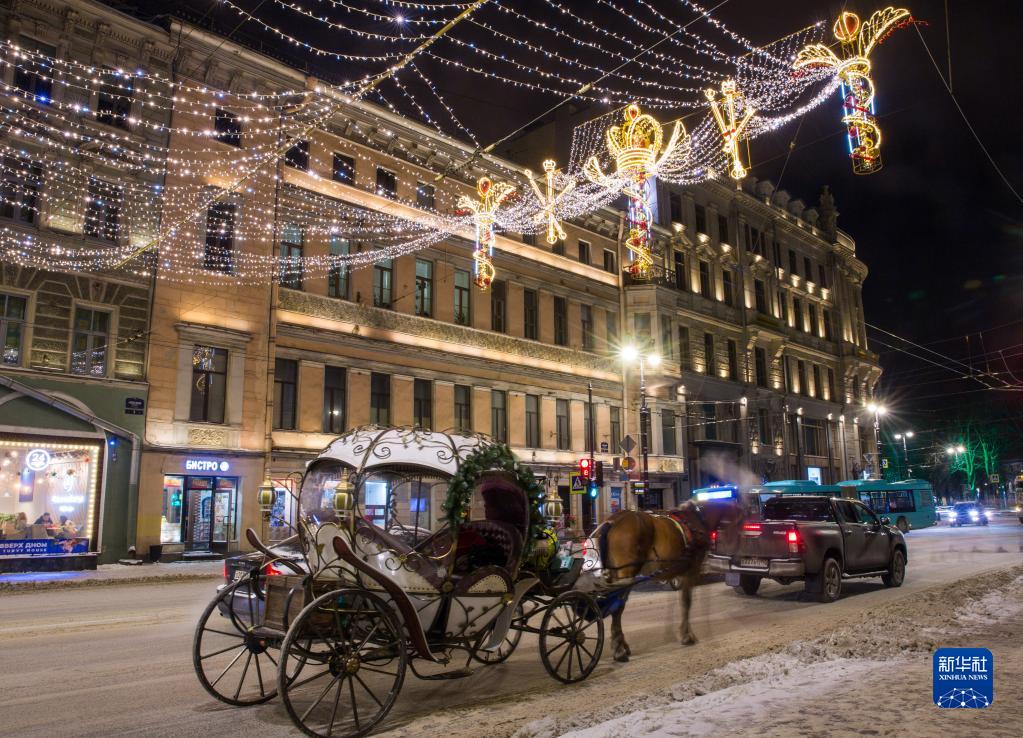 新年即將到來,俄羅斯圣彼得堡街頭點(diǎn)亮各色燈飾,營造節(jié)日氣氛。