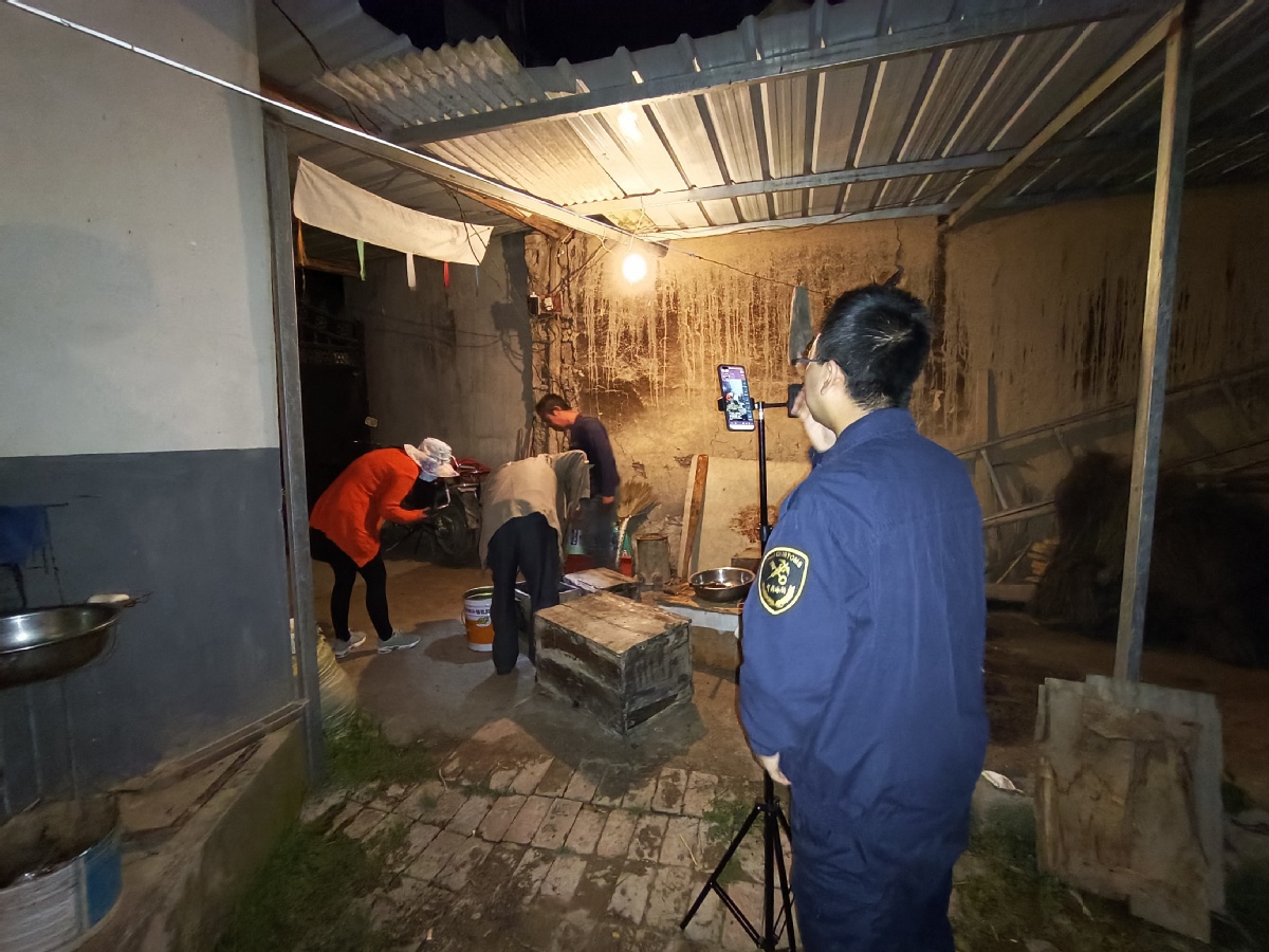在她身后,蘭州海關(guān)幫扶工作隊員們各司其責(zé),有的手扶打光燈隨時調(diào)整補(bǔ)光,有的緊盯攝像機(jī)鏡頭及時調(diào)整畫幅和角度,有的作為觀眾與文香蓮女士眼神交流……儼然一個專業(yè)拍攝團(tuán)隊。