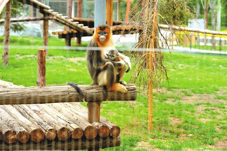 在珍稀動(dòng)物區(qū),同樣也是4月份出生的兩只小金絲猴好奇心很強(qiáng),總想離開媽媽的懷抱去闖蕩世界,而猴媽媽則小心翼翼觀察周圍的環(huán)境,稍有響動(dòng)就把猴寶寶攬入懷中,“寶媽”氣十足。