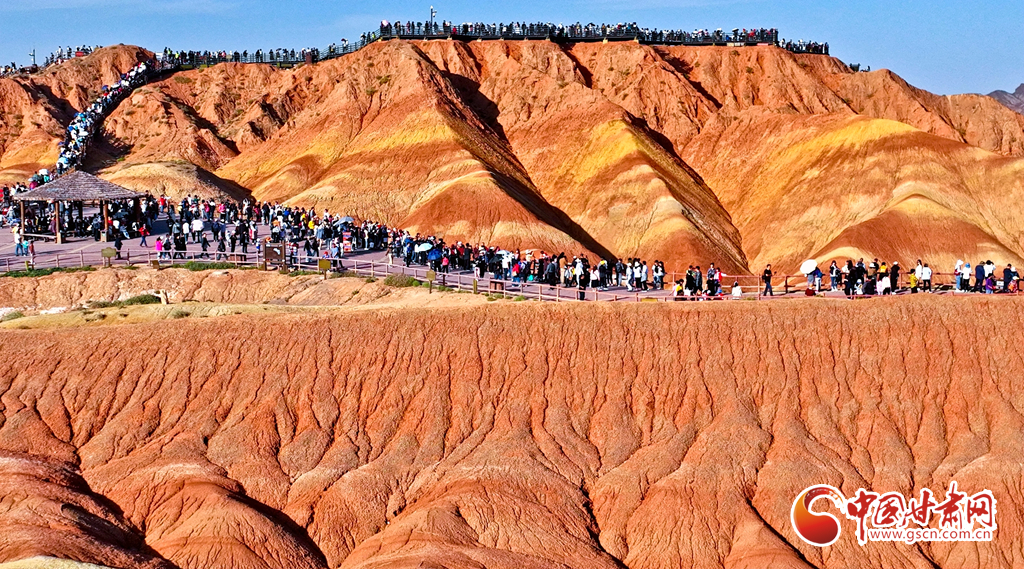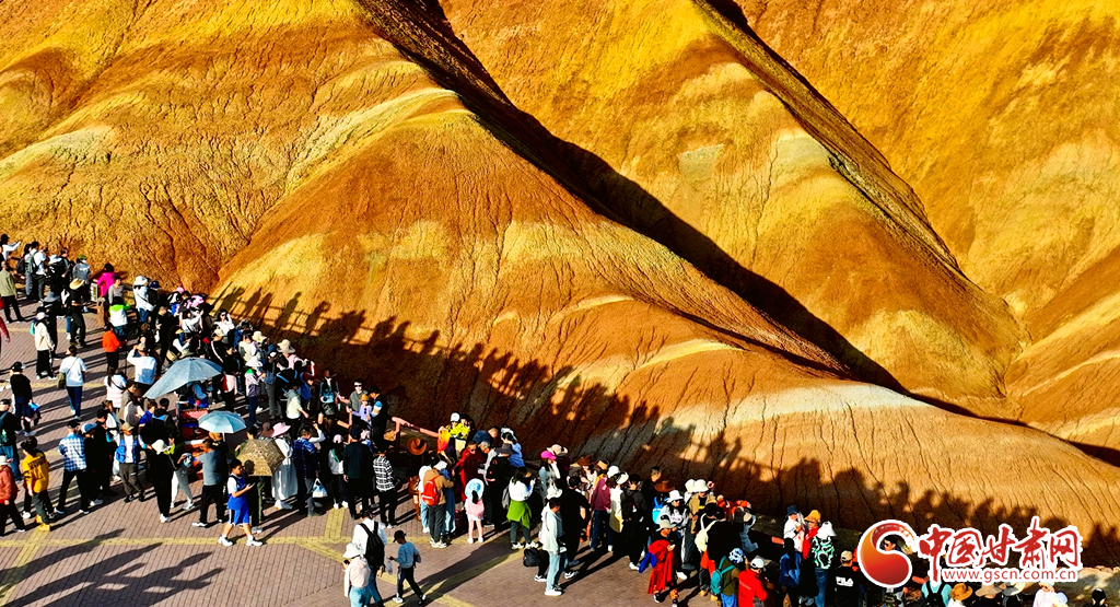 9月30日,甘肅張掖七彩丹霞景區(qū)內(nèi)人頭攢動(dòng),全國(guó)各地的游客紛至沓來(lái),欣賞獨(dú)特的丹霞地貌,領(lǐng)略西北壯美景色。