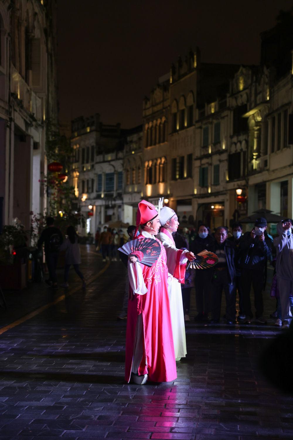 ↑觀眾在海口騎樓老街觀看瓊劇表演。瓊劇又稱“海南戲”,是國家級(jí)非物質(zhì)文化遺產(chǎn)之一。在海南欣賞瓊劇,是認(rèn)識(shí)當(dāng)?shù)匚幕?、體驗(yàn)當(dāng)?shù)匚幕囊粋€(gè)好方式。新華社記者 張麗蕓 攝(資料圖片)