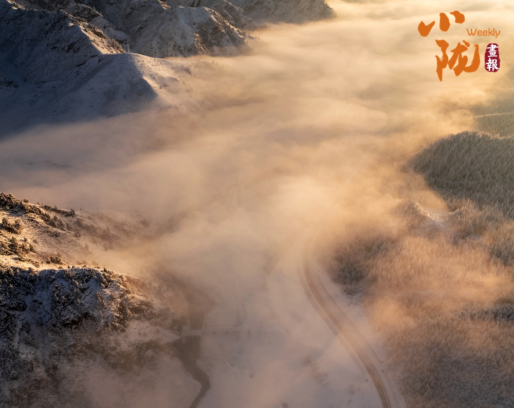 浩瀚的云海在山谷間涌動,時隱時現(xiàn)的山峰,晶瑩剔透的雪掛,透如薄紗的霧氣,隨風紛飛的雪花,勾勒出天祝高原獨有的春景,美得令人心醉。