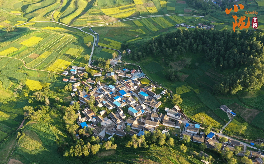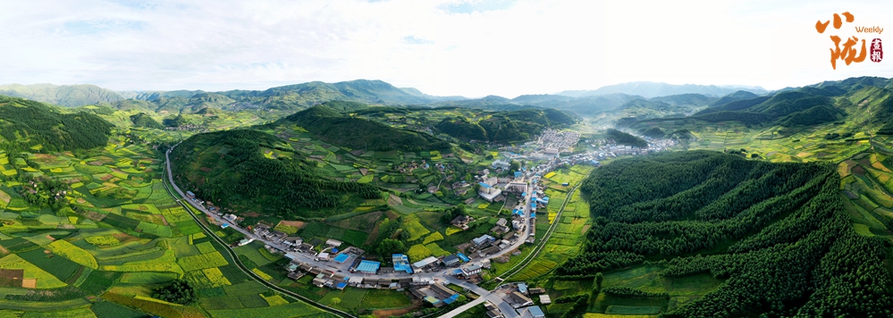 從空中俯瞰,阡陌縱橫與遠(yuǎn)處連綿起伏的青山,錯落有致的民居交相呼應(yīng),勾勒出一幅美麗的“田園畫卷”。