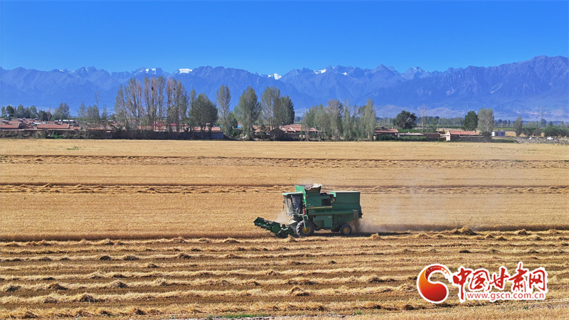 眼下,位于祁連山下的民樂縣南古鎮(zhèn)毛城村800畝連片小麥種植基地上,機(jī)聲隆隆,農(nóng)機(jī)手們駕駛收割機(jī)穿梭往返麥田之中搶收小麥,一派忙碌的豐收景象。近期,隨著民樂縣沿祁連山冷涼山區(qū)小麥迎來成熟季,民樂縣種植的26萬畝小麥進(jìn)入了繁忙的收割期。